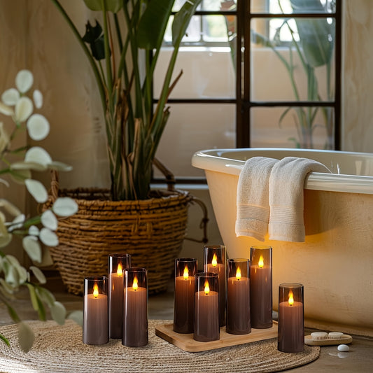 9 Grey Flameless Candles, Battery Operated Candles With Remote Control And Timer, Flickering LED Pillar Candles For Home Halloween Decor, Warm Yellow Light